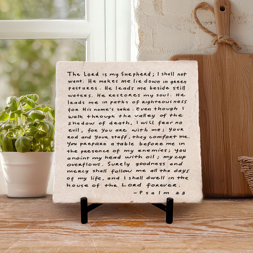 The LORD is my shepherd; I shall not want. He makes me lie down in green pastures; He leads me beside quiet waters. He restores my soul. He guides me in the paths of righteousness for the sake of His name.
