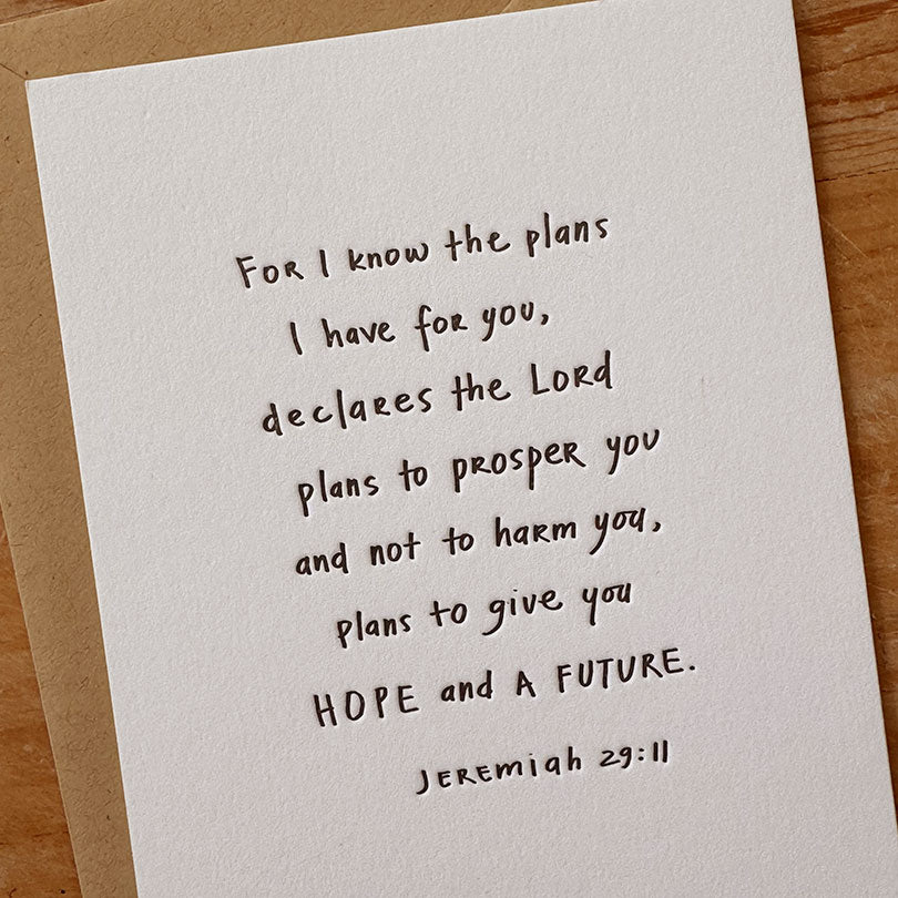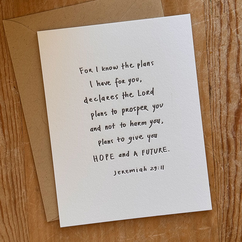 Jeremiah 29:11Letterpress flat note card (4.25"x5.5")