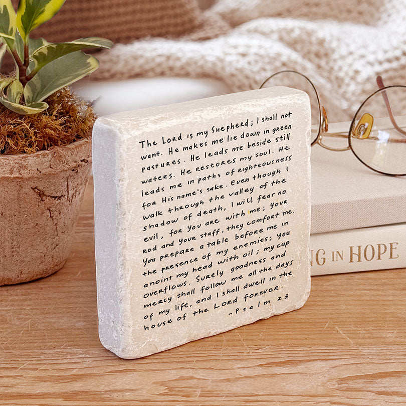 The LORD is my shepherd; I shall not want. He makes me lie down in green pastures; He leads me beside quiet waters. He restores my soul. He guides me in the paths of righteousness for the sake of His name.