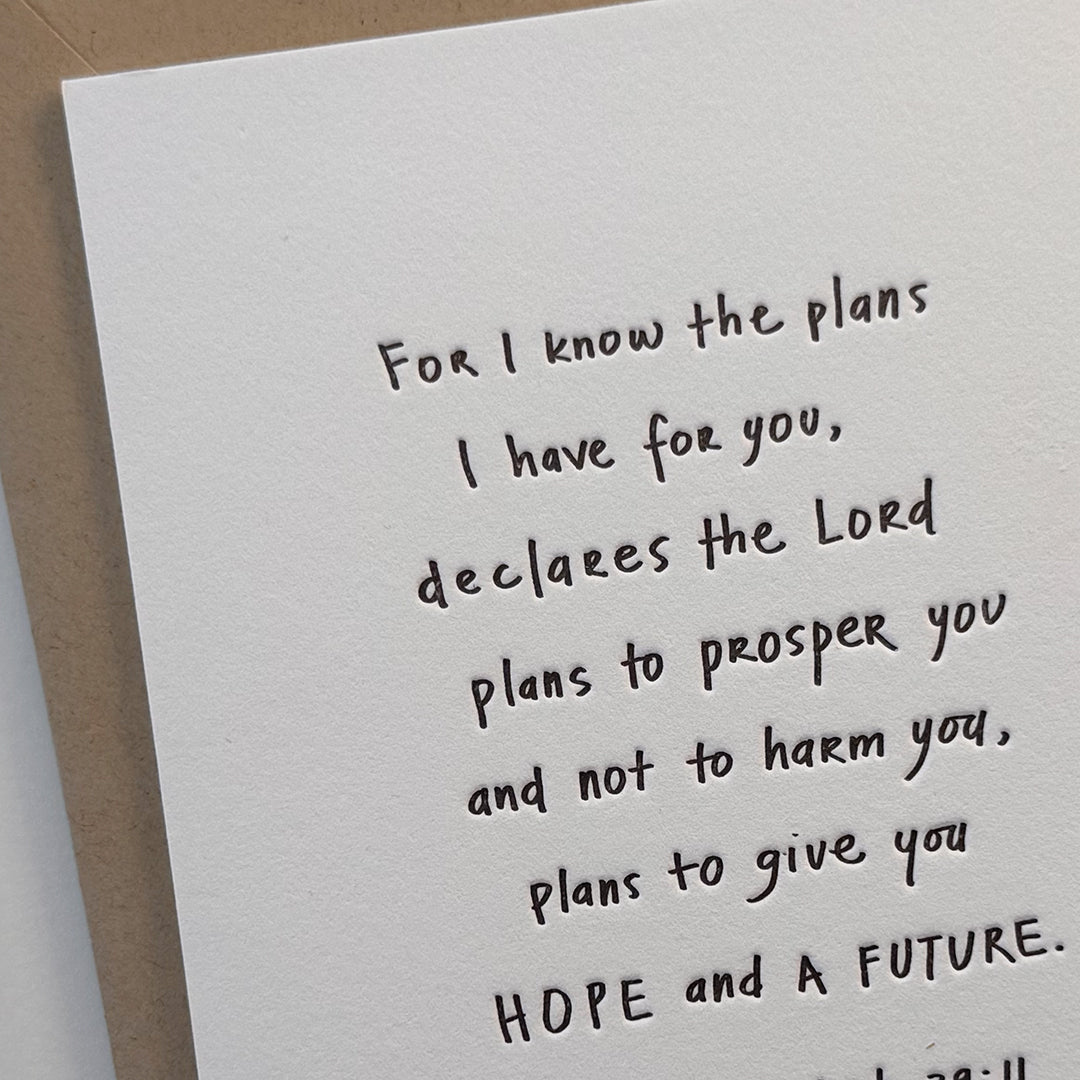 Jeremiah 29:11Letterpress flat note card (4.25"x5.5")
